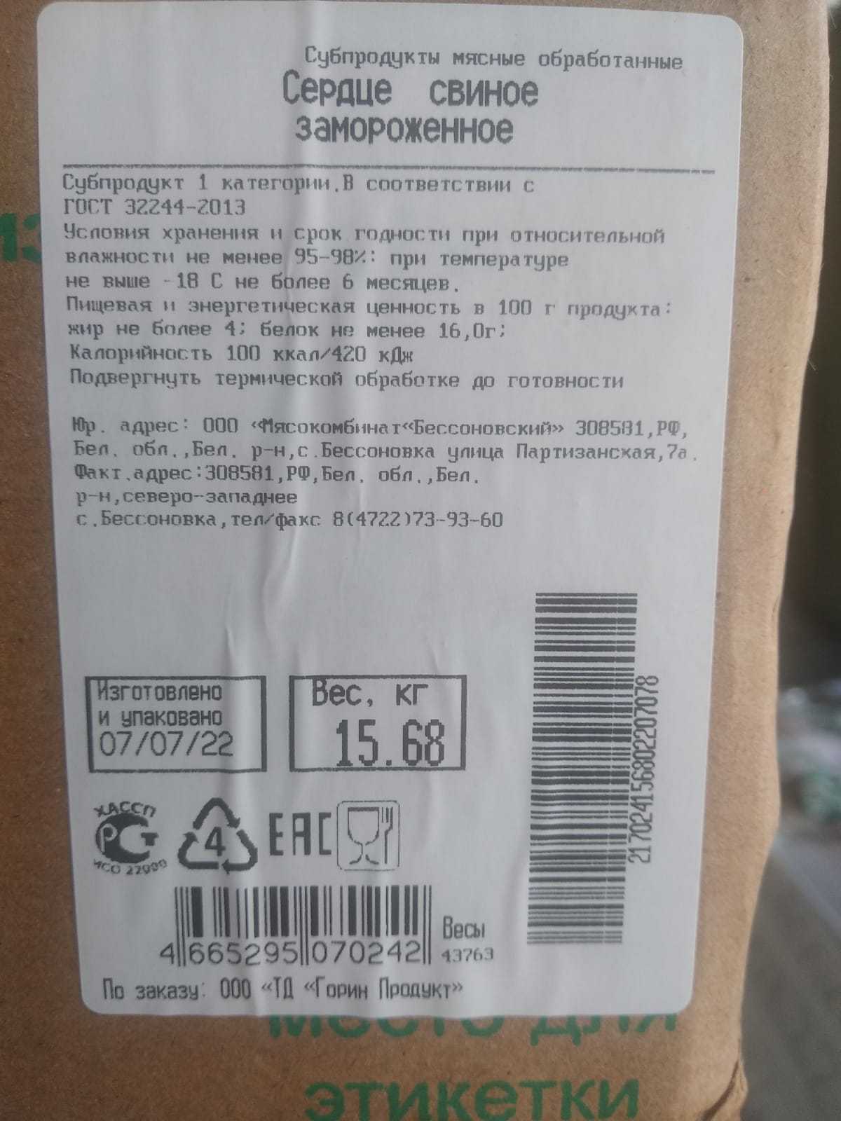 Nutritional value per 100g of the product (average values): Protein-16.0g, Fat-4.0g, Energy value 100Kcal/420kJ