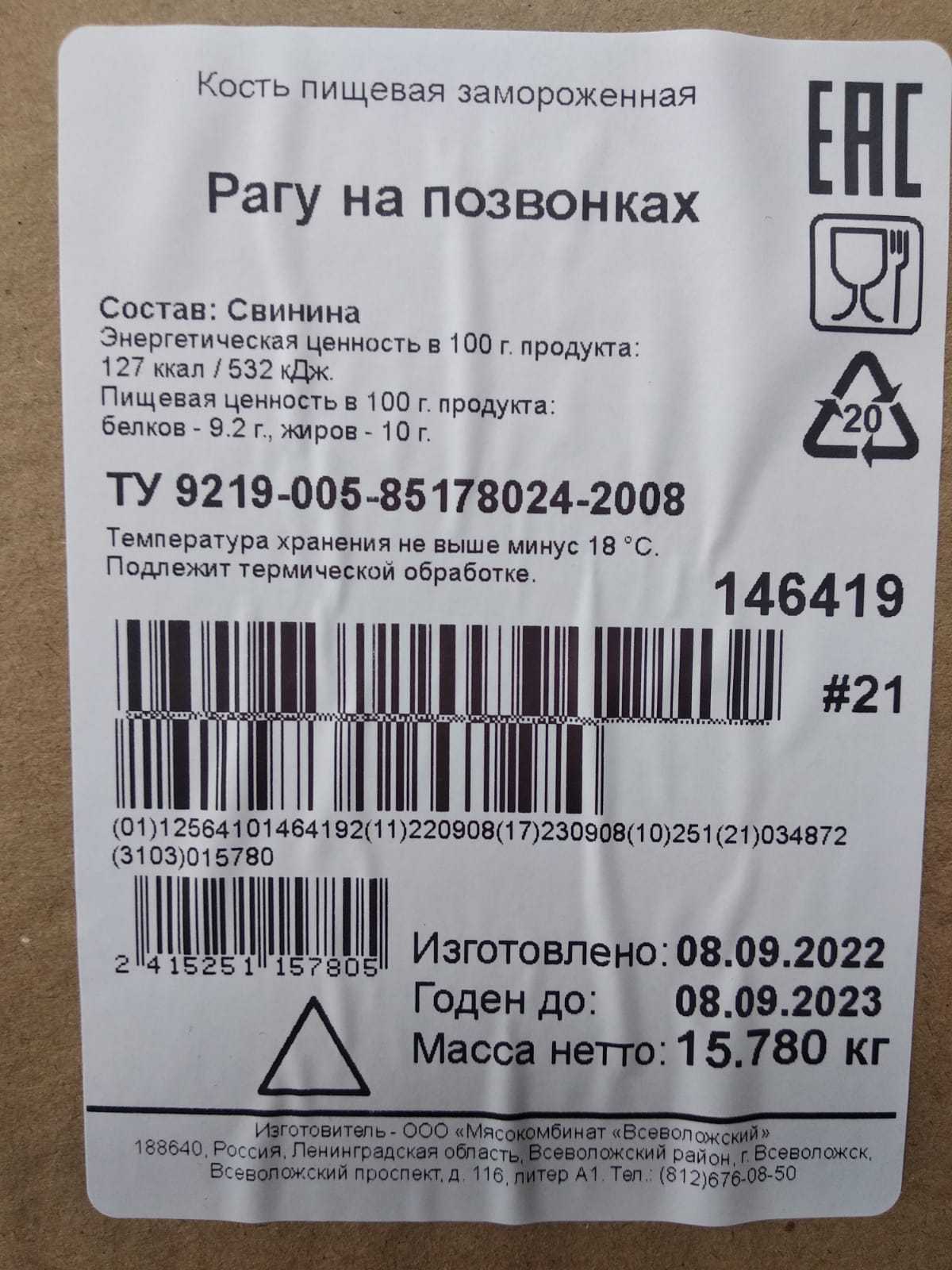 Energy value per 100 g of the product: 127 kcal / 532 kJ. Nutritional value per 100 g of the product: proteins – 9.2 g, fats – 10 g.