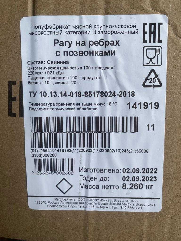 Energy value per 100 g of the product: 220 kcal / 921 kJ. Nutritional value per 100 g of the product: proteins – 10 g, fats – 10 g.