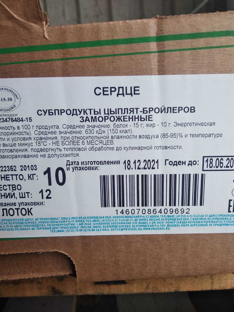 Nutritional and energy value per 100 g. (average values): Proteins-16 g. Fats-10 g.kcal 160/ kJ 630. Expiration date and storage conditions: 6 months at temperatures below minus 18°C and relative humidity 85-95%.