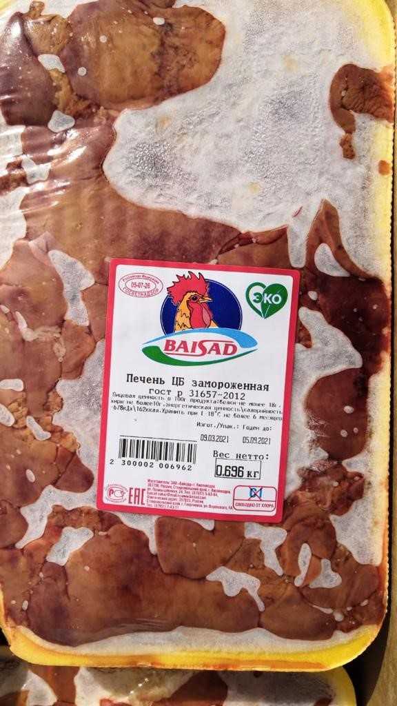Nutritional and energy value per 100 g. (average values): Proteins-18 g. Fats-10 g.kcal 162/ kJ 678. Expiration date and storage conditions: 6 months at temperatures below minus 18°C, 2 months at temperatures below minus 12°C and relative humidity 90+/-5%.