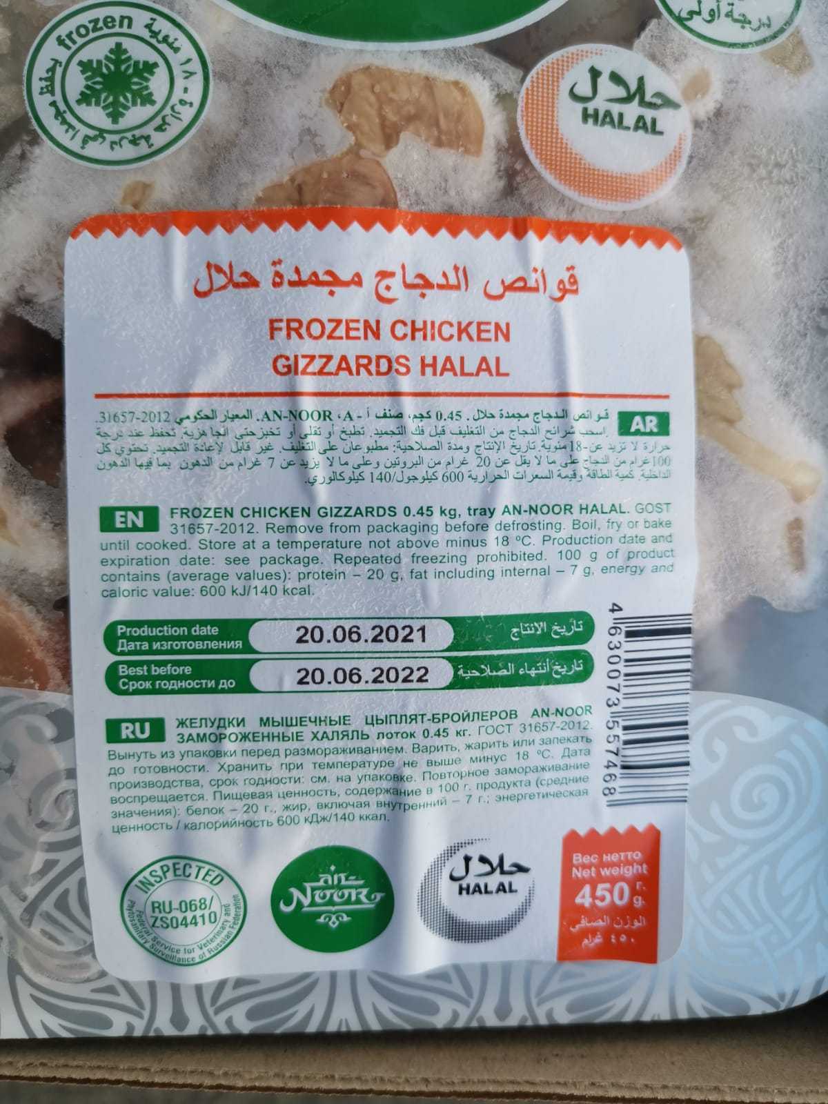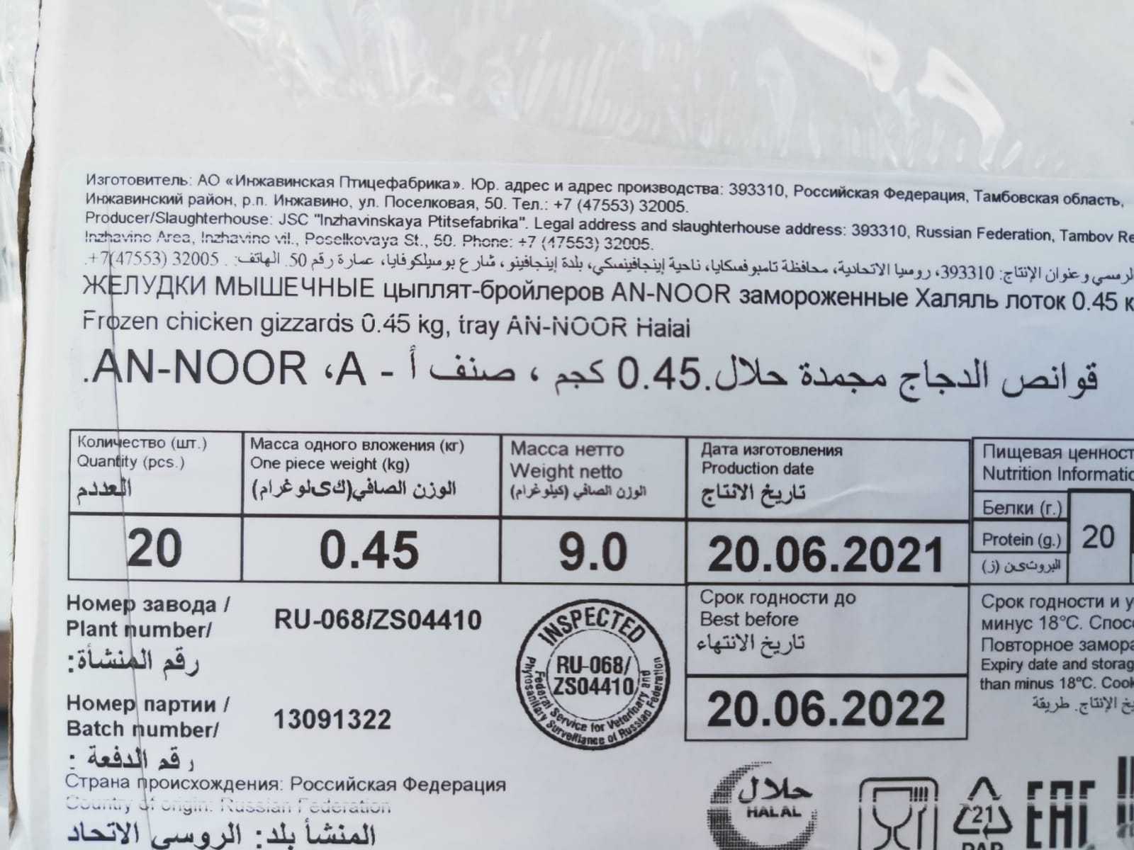 Nutritional and energy value per 100 g. (average values): Proteins-20 g. Fats-7 g.kcal 140/ kJ 600. Expiration date and storage conditions: 12 months at temperatures below minus 18°C.