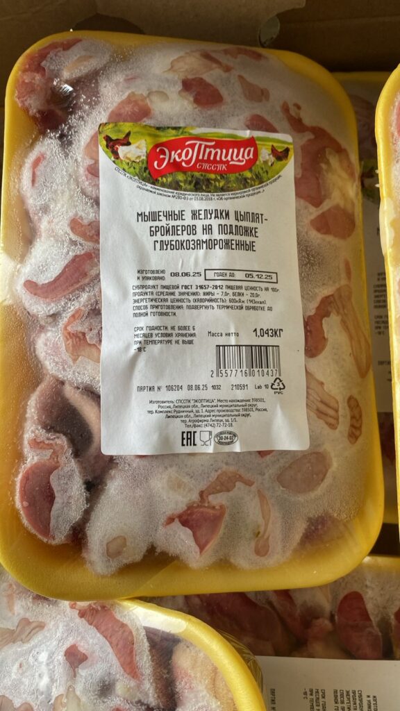 Nutritional and energy value per 100 g. (average values): Proteins-20 g. Fats-7 g.kcal 143/ kJ 600. Expiration date and storage conditions: 6 months at temperatures below minus 18°C.
