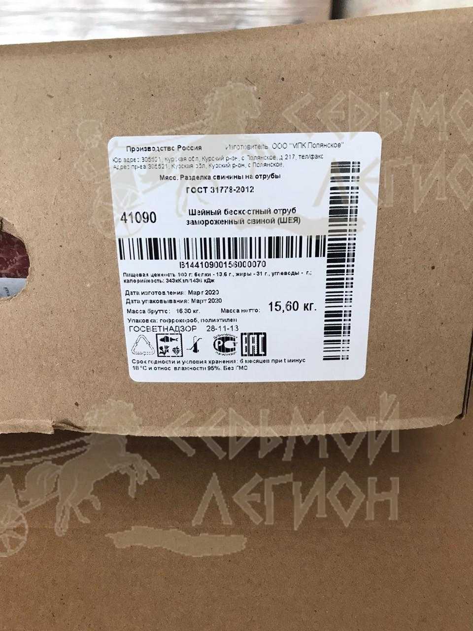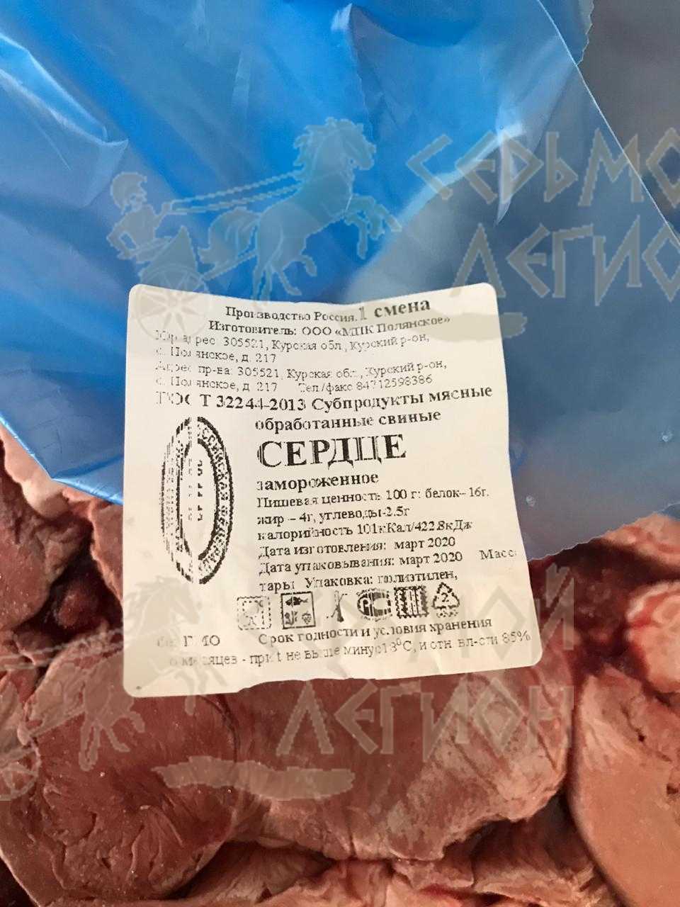 Nutritional value 100 g. Proteins-11 g. fats-20 g.calorie value: 235,8 kcal/985 kJ. Expiration date and storage conditions: 6 months at temperatures below minus 18°C and relative humidity 95%.