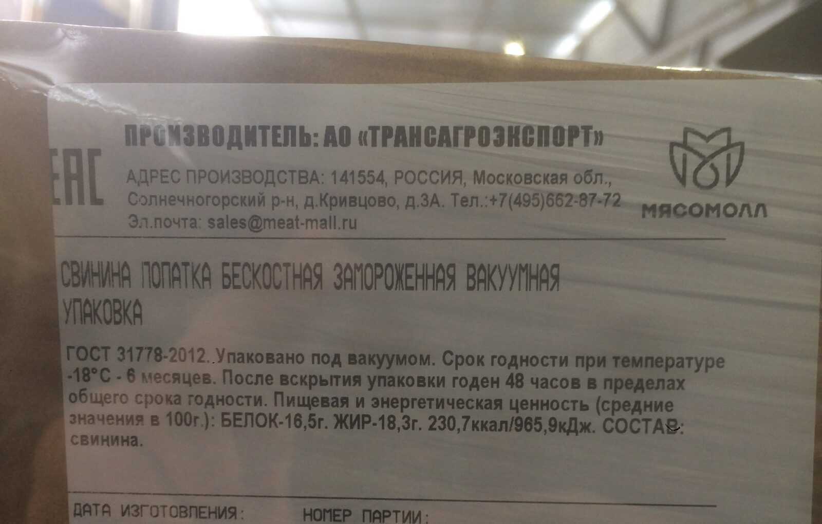 Nutritional and energy value (average value per 100 g.): proteins-16,5 g. Fats-18,3 g. 230 kcal-965,9 kJ. Expiration date and storage conditions: 6 months at temperatures below minus 18°C.