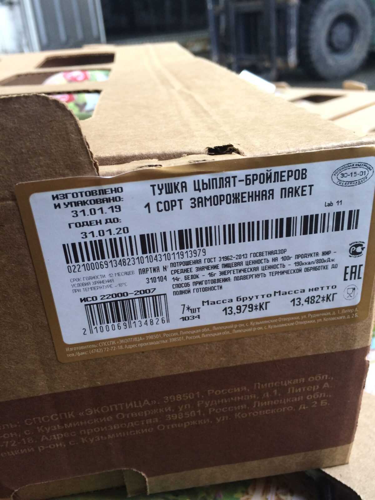Average nutritional and energy value per 100 g.: proteins-16 g. Fats-14 g. calorie value-190/796 kJ. Expiration date and storage conditions: 12 months at temperatures below minus 18°C.
