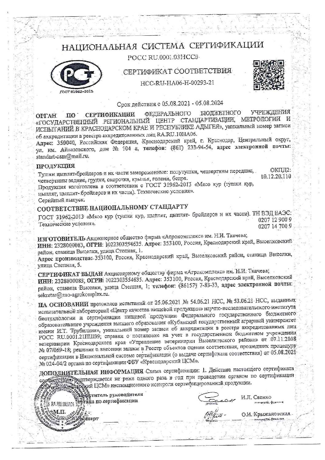 ПОЛУЧИТЬ СПЕЦИАЛЬНОЕ ПРЕДЛОЖЕНИЕ (ПРАЙС-ЛИСТ)GET A SPECIAL OFFER (PRICE LIST)Nutritional value per 100 g.: proteins, not less than-16. Fats, not more than-14 g. Energy value (calorie value) 790 kJ(190 kcal). Expiration date and storage conditions: 12 months at temperatures below minus 18°C.