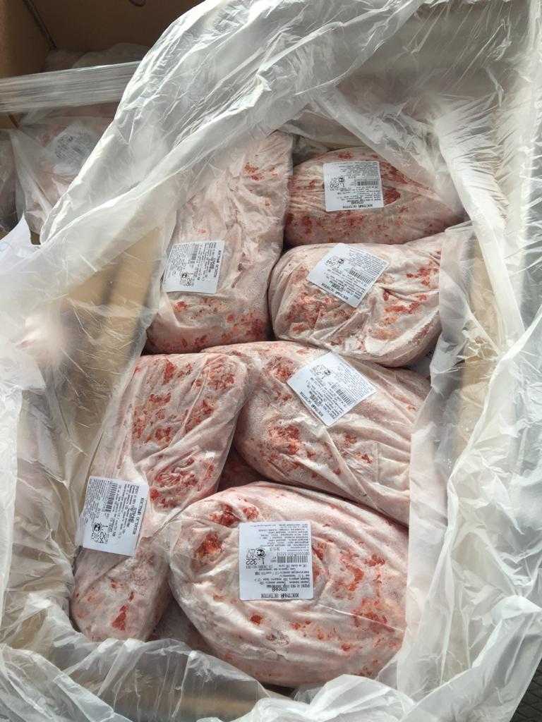 Среденее значение: Nutritional value 100 g. : proteins-19,7 g., Fats-6,1 g. calorie value/Energy value -133,7kcal/559,7 kJ. Expiration date and storage conditions: 180 days at temperature below minus 18°C.