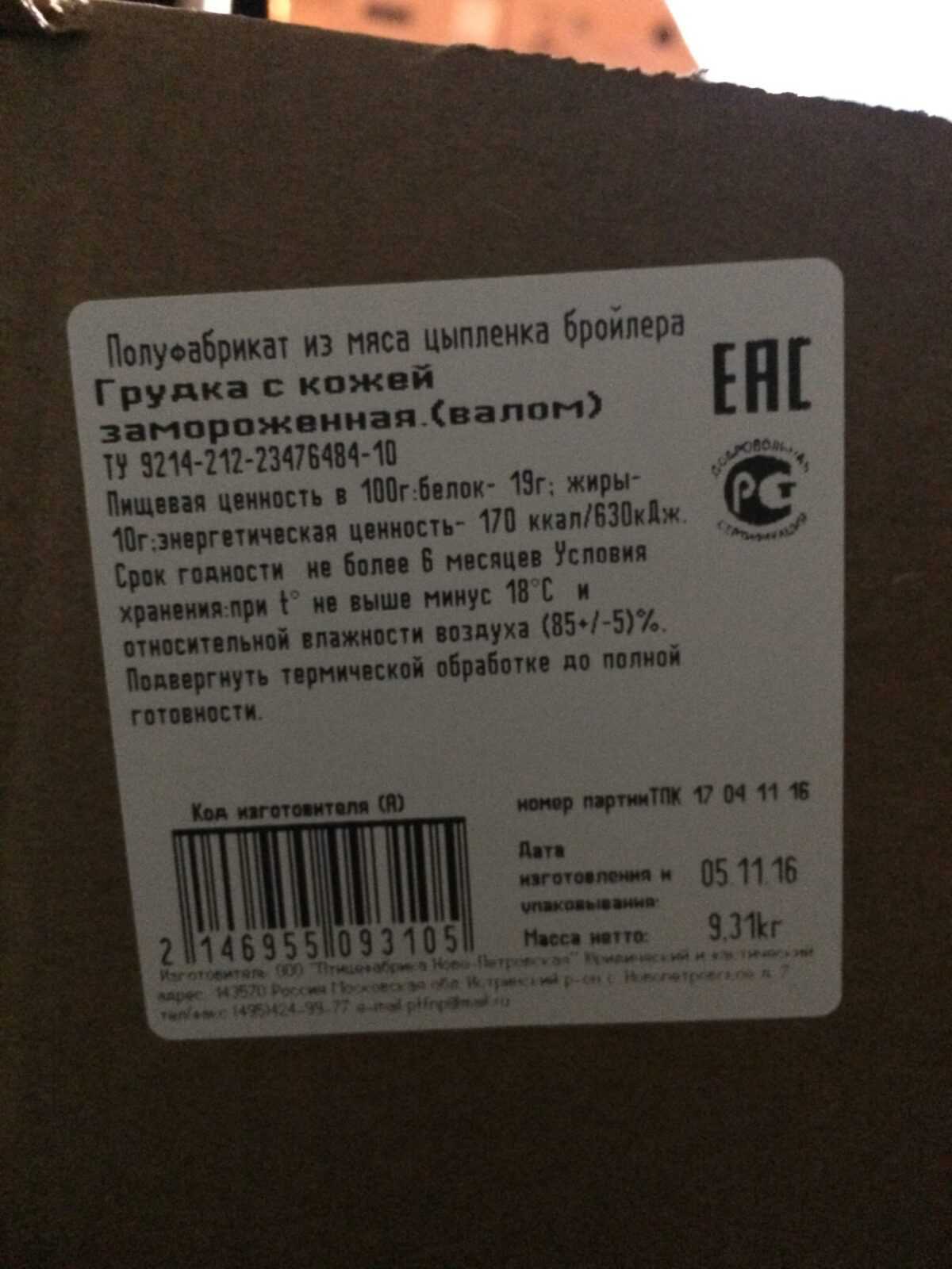 ПОЛУЧИТЬ СПЕЦИАЛЬНОЕ ПРЕДЛОЖЕНИЕ (ПРАЙС-ЛИСТ)GET A SPECIAL OFFER (PRICE LIST)Nutritional value per 100 g.: proteins-19 g. fats-10 g.; Energy value -170 kcal/630 kJ. Expiration date and storage conditions: 6 months at temperatures below minus 18°C and relative humidity 80-90%.