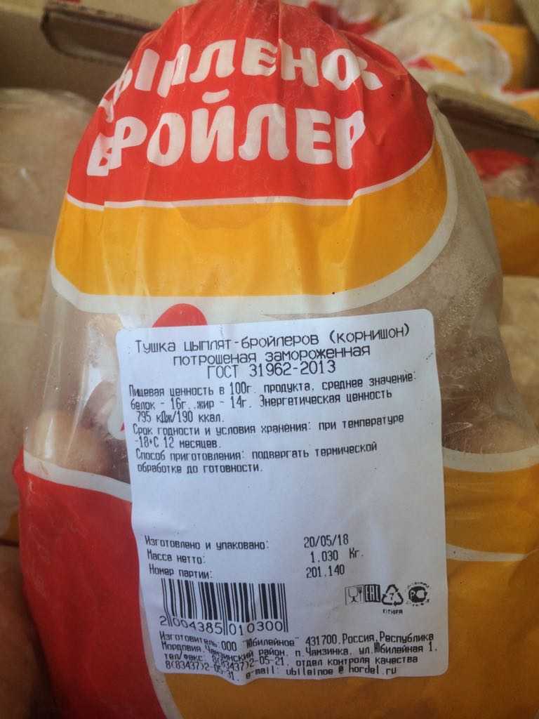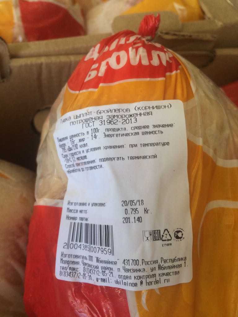 Nutritional value per 100 g.:, average value: proteins-16 g. Fats-14 g. Energy value -795 kJ/190 kcal. Expiration date and storage conditions: 12 months at temperatures below minus 18°C.