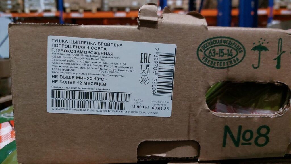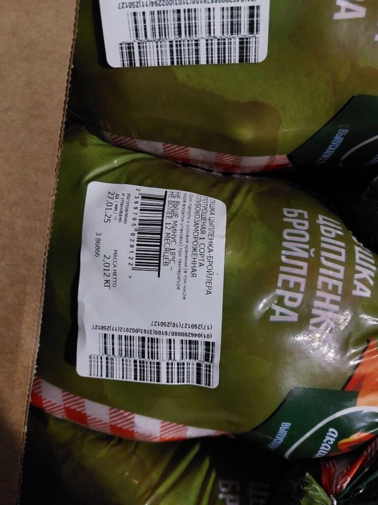 100 g. of product contains: proteins not less than-16,0 g. Fats not more than-14,0 g. Energy value -190 kcal/795 kJ. Expiration date and storage conditions: 12 months at temperatures below minus 18°C.