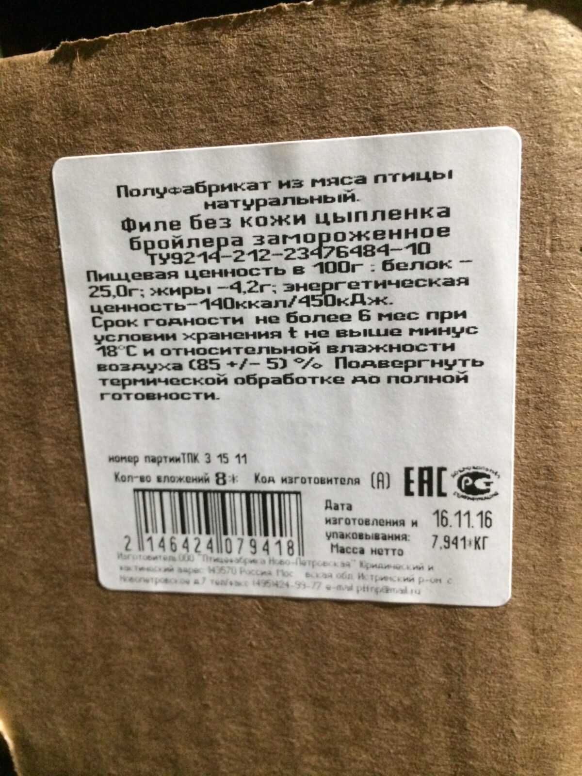 ПОЛУЧИТЬ СПЕЦИАЛЬНОЕ ПРЕДЛОЖЕНИЕ (ПРАЙС-ЛИСТ)GET A SPECIAL OFFER (PRICE LIST)Nutritional value per 100 g.: proteins-25,0 g. fats-4,2; Energy value -140 kcal/450 kJ. Expiration date and storage conditions: 6 months at temperatures below minus 18°C and relative humidity 80-90%.