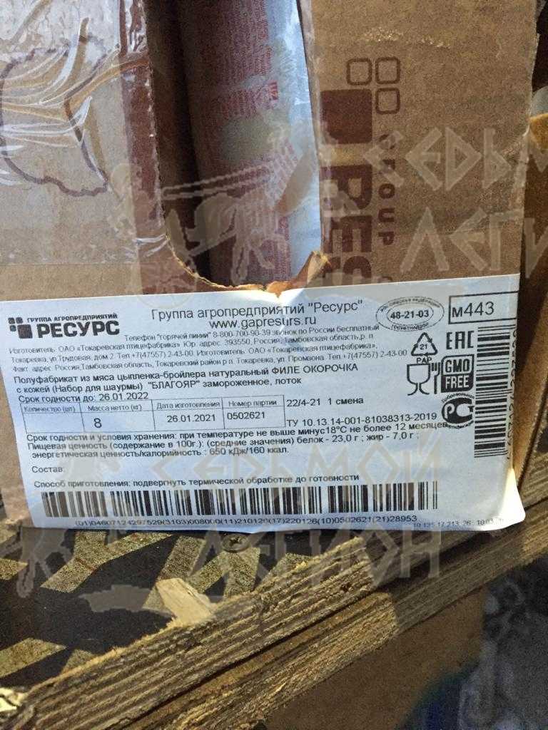 Nutritional value (per 100 g.): average values: proteins-22 g. Fats-7 g. Energy value /calorie value: 850 kJ/460 kcal. Expiration date and storage conditions: 12 months at temperatures below minus 18°C.