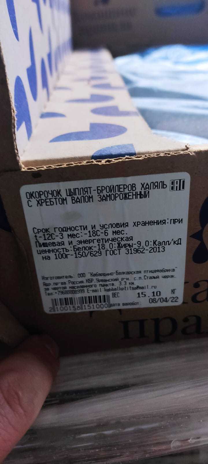Nutritional and energy value per 100 g. (average values): Proteins-18 g. Fats-9 g.kcal 150/ kJ 629. Expiration date and storage conditions: 6 months at temperatures below minus 18°C, 3 months at temperatures below minus 12°C.