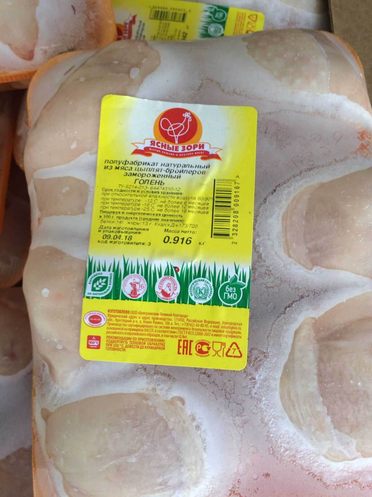 Nutritional and energy value per 100 g. (average values): Proteins-14 g. fats-13 g.kcal/ kJ173/720. Expiration date and storage conditions: 18 months at temperatures below minus 25°C, 12 months at temperatures below minus 18°C, 6 months at temperatures below minus 12°C and relative humidity 80-90%.