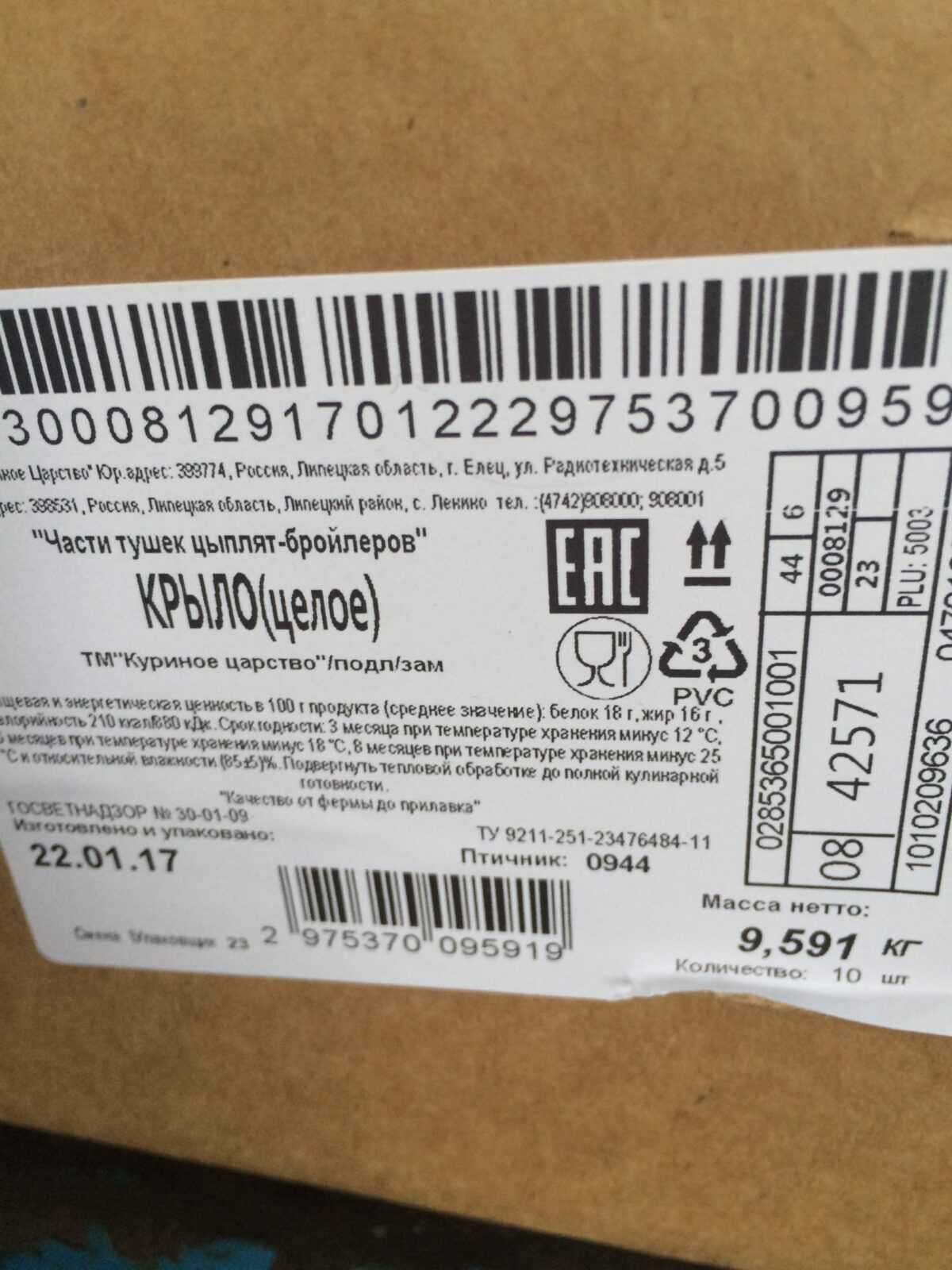 Nutritional and energy value per 100 g. (average values): proteins-18 g., Fats-16 g. calorie value 210 kcal/880 kJ. Expiration date and storage conditions: 8 months at temperatures below minus 25°C, 6 months at temperatures below minus 18°C, 3 months at temperatures below minus 12°C and relative humidity 80-90%.