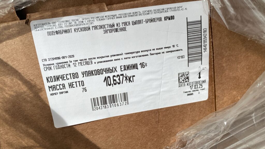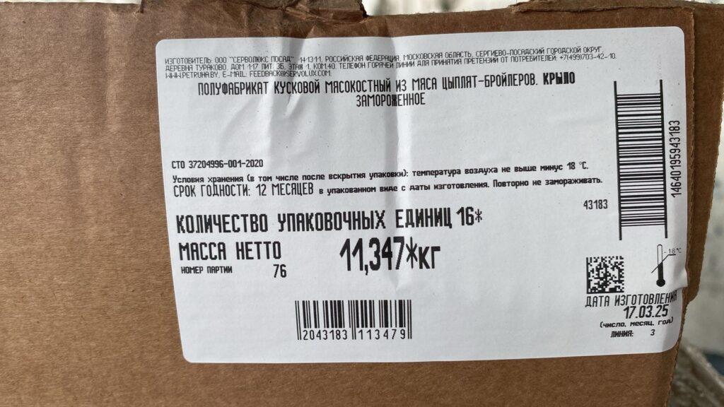 Shelf life and storage conditions: 12 months at a temperature not higher than minus 18°C.