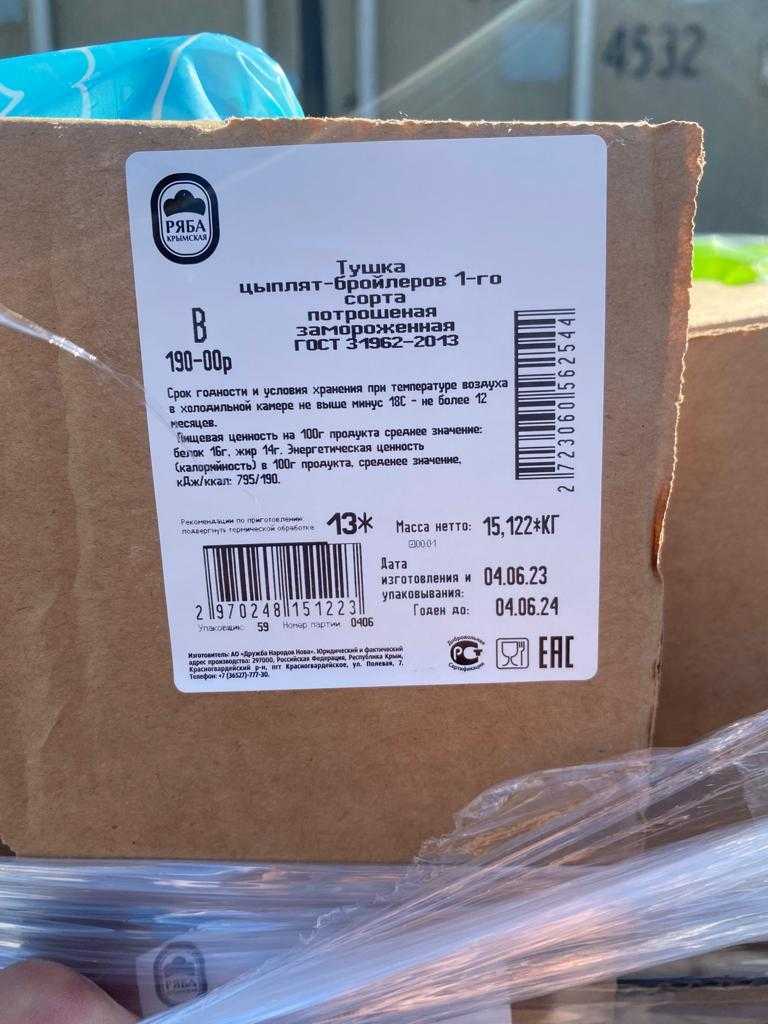 Broiler chicken carcass of the 1st grade (carcass weight 1.5)