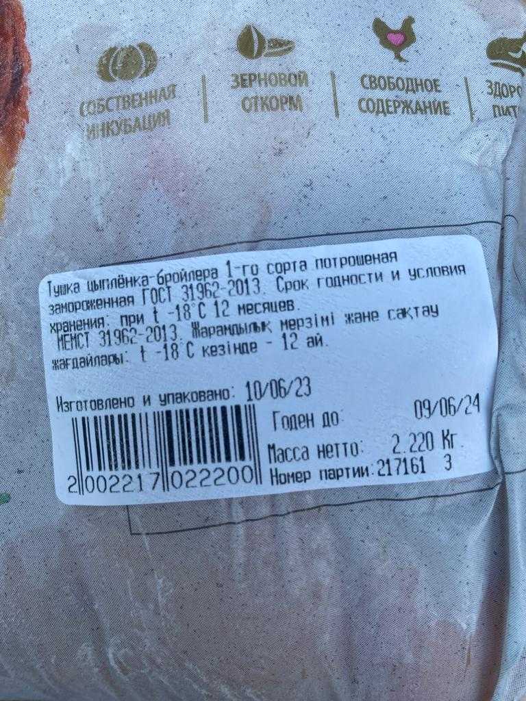 Broiler chicken carcass of the 1st grade (carcass weight 1.8/2.3)