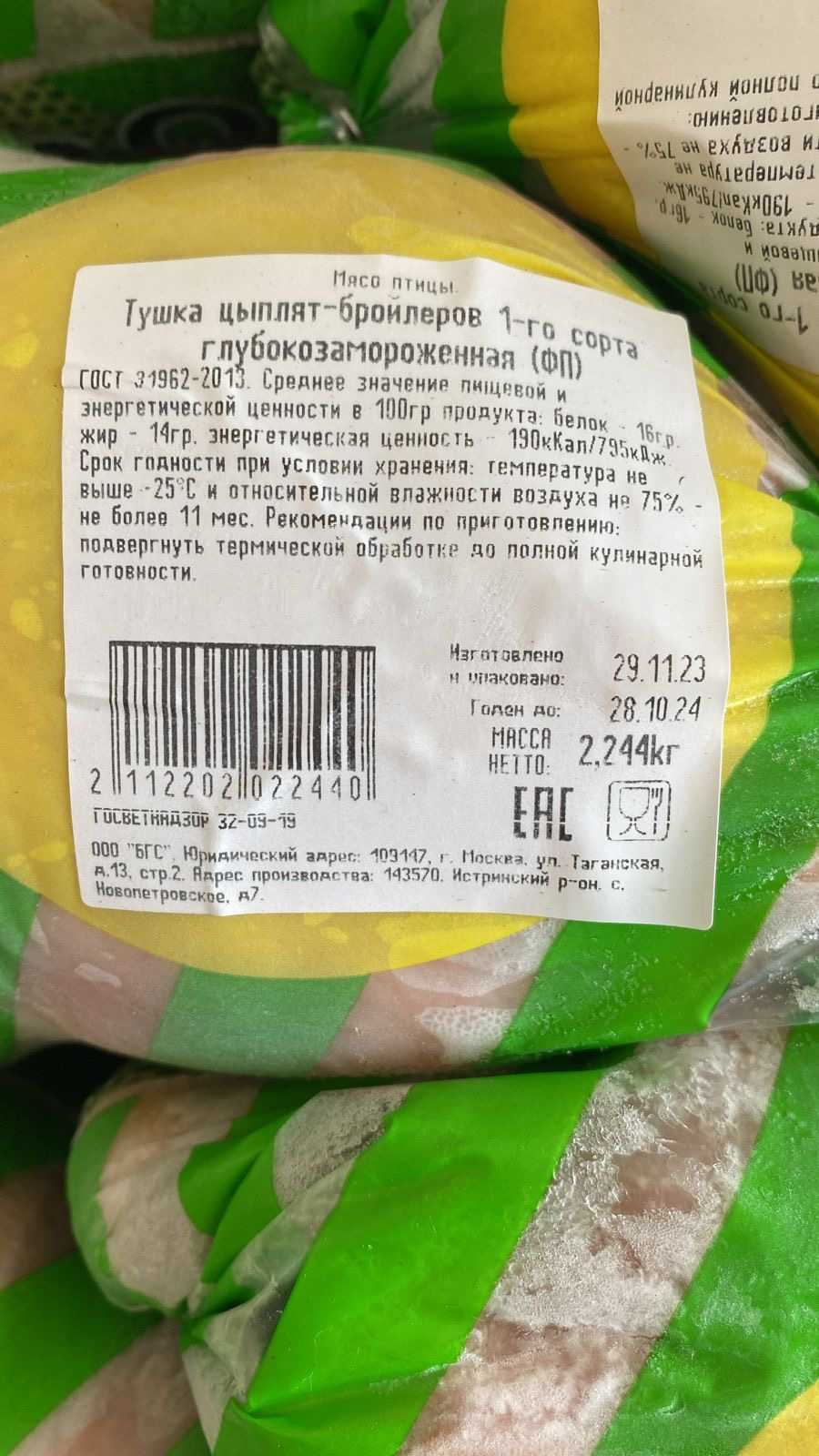 The carcass of a broiler chicken of the 1st grade