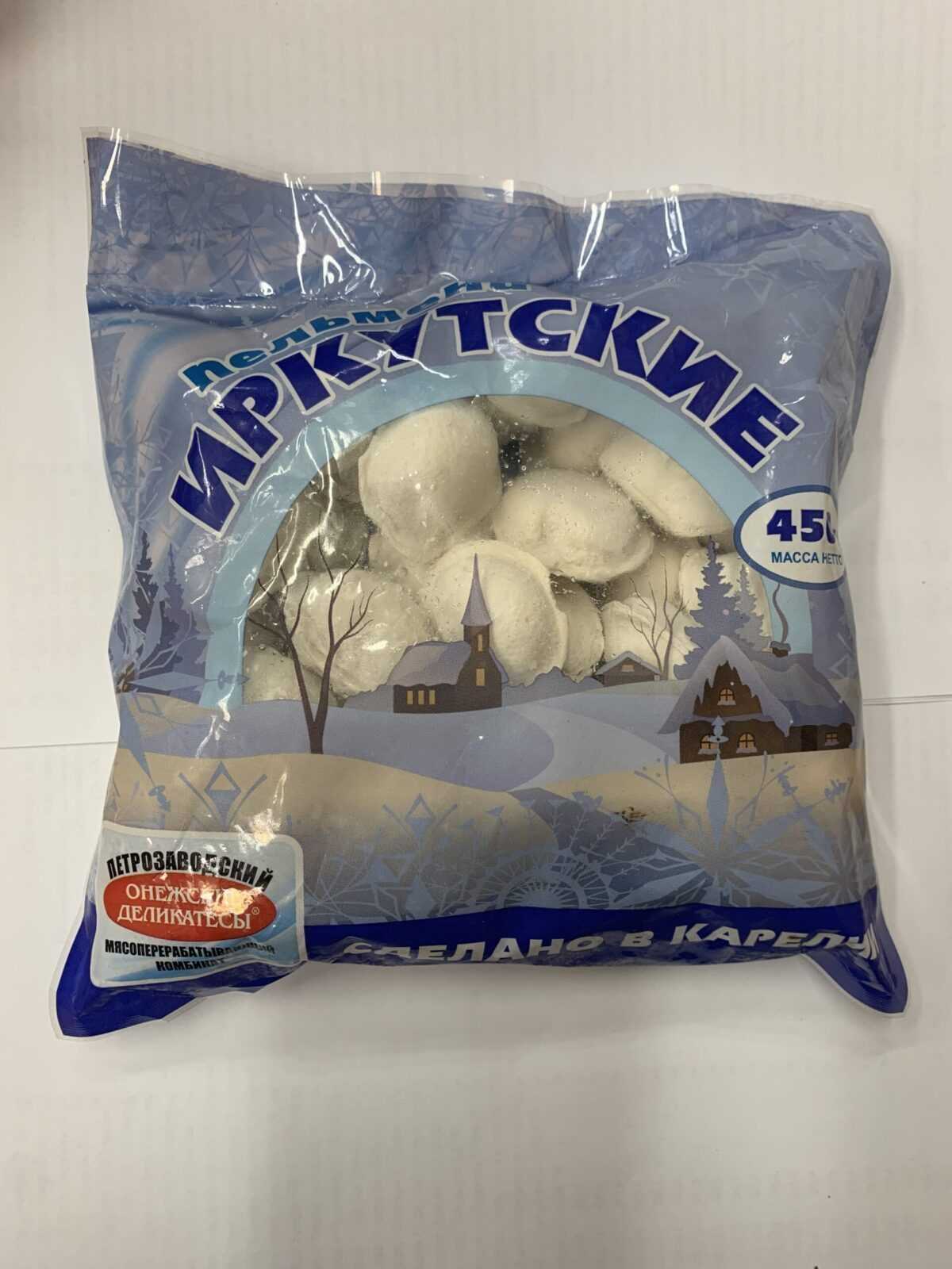 Ingredients: beef, onion, vegetable proteins, edible salt, spice mixture, wheat flour, water, vegetable oil, dough improver. Net weight: 450 g. Nutritional and energy value per 100 g. (average values): Proteins-8 g. Fats-15 g. Carbohydrates-38 g.kcal 319/ kJ 1336. Expiration date and storage conditions: 180 days at temperature below minus 18°C. TU 9214-060-54899698-2012