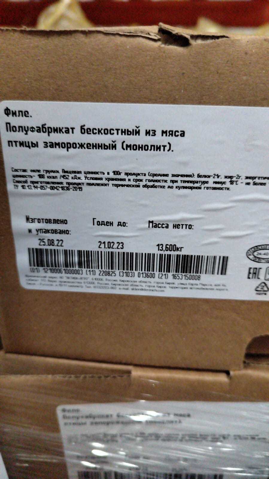 Nutritional value per 100g. product (average values) protein-24g. fat-2g. energy value-106 kcal/452