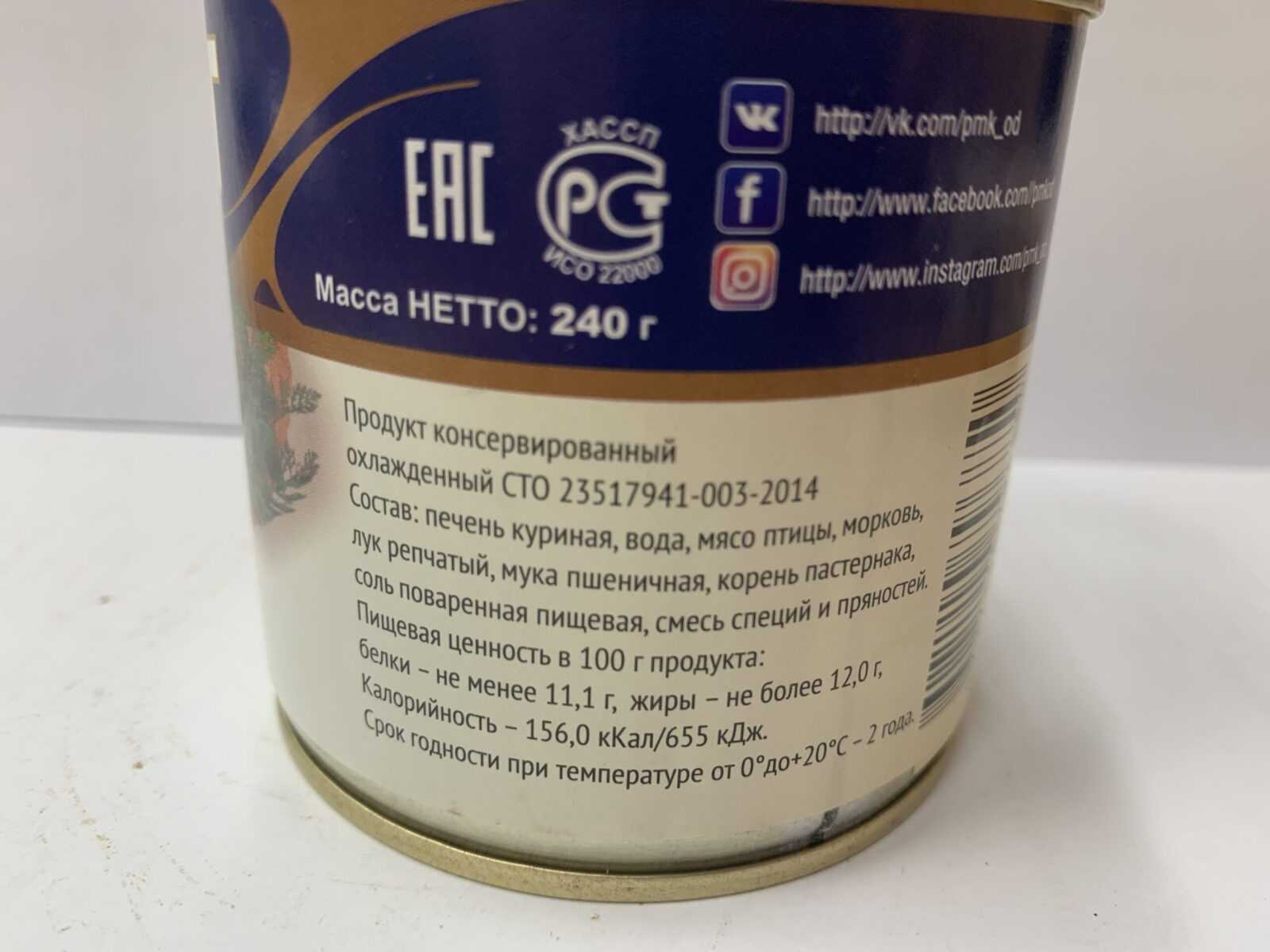 Nutritional and energy value per 100 g. (average values): Proteins-11,1 g. Fats-12 g.kcal 156/ kJ 655. Expiration date and storage conditions: 2 years at temperatures from 0 to 20°C.