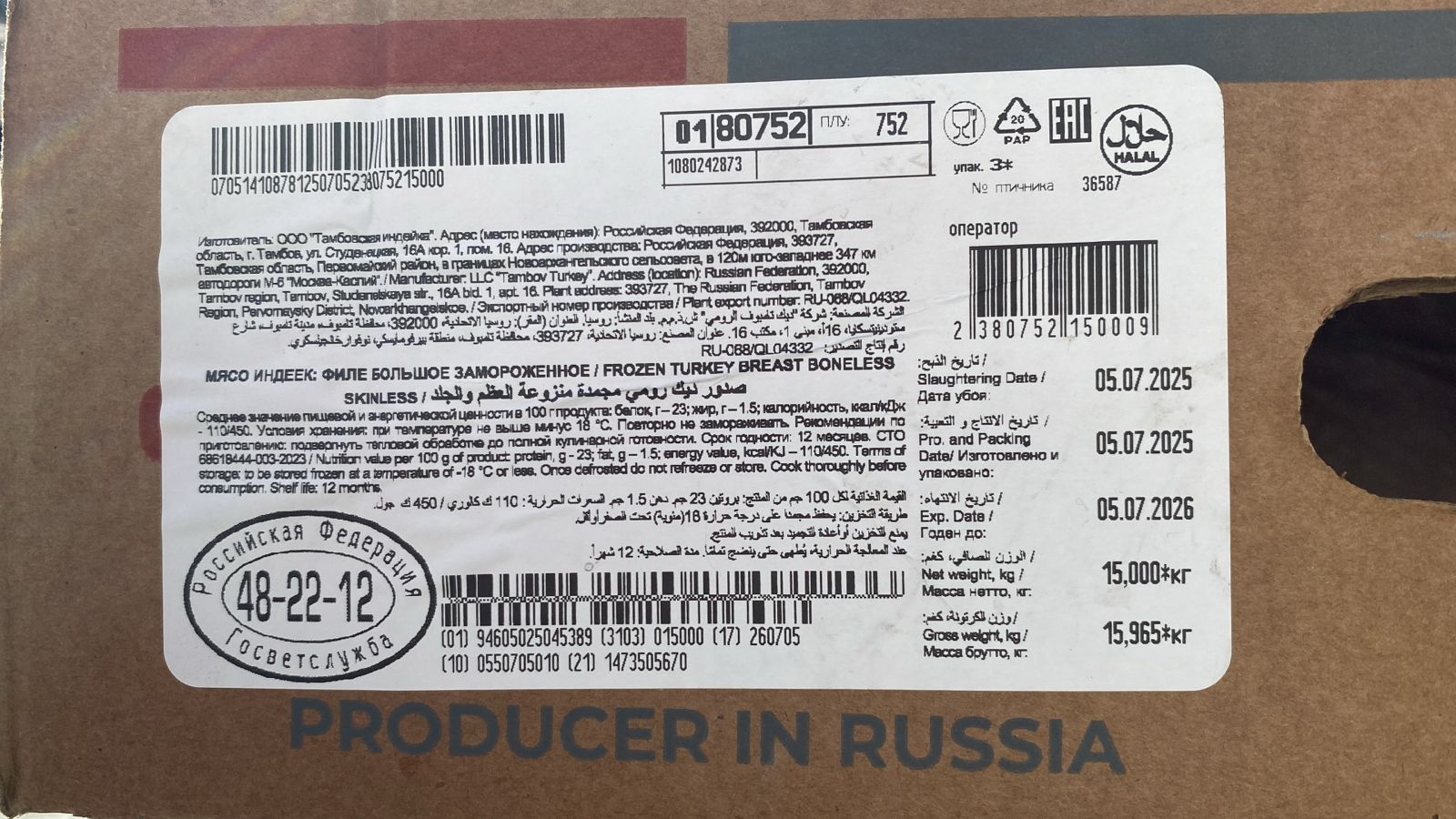 Филе грудки индейки ПаваПава ( коробка 15 кг, 3 блока по 5 кг)