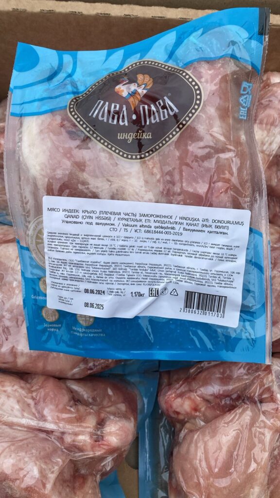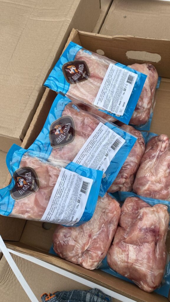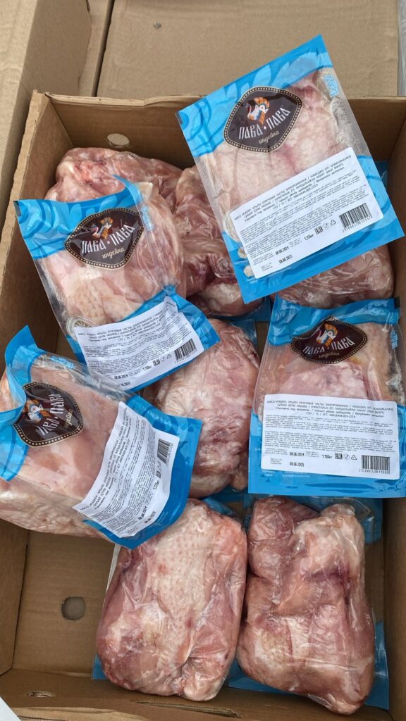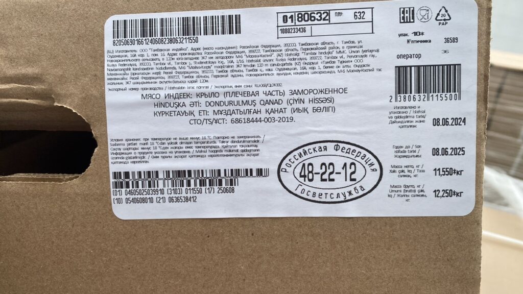 Average nutritional and energy value per 100 g.: proteins-23 g. fats-5 g. calorie value 140 kcal/590 kJ. Expiration date and storage conditions: 240 days at temperature below minus 18°C.