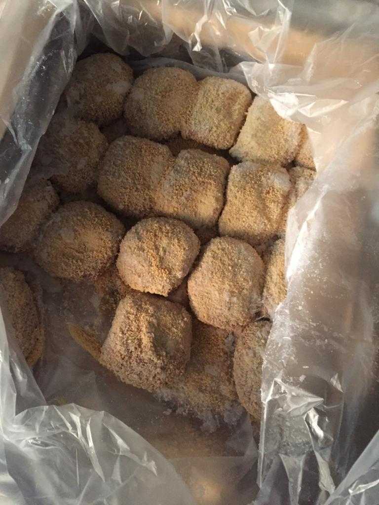 Average energy value per 100 g.: proteins-15,4 g. Fats-12,0 g. Carbohydrates-12,0 g. Energy value: 217,6kcal/909,8 kJ. Expiration date and storage conditions: 180 days at temperature below minus 18°C.