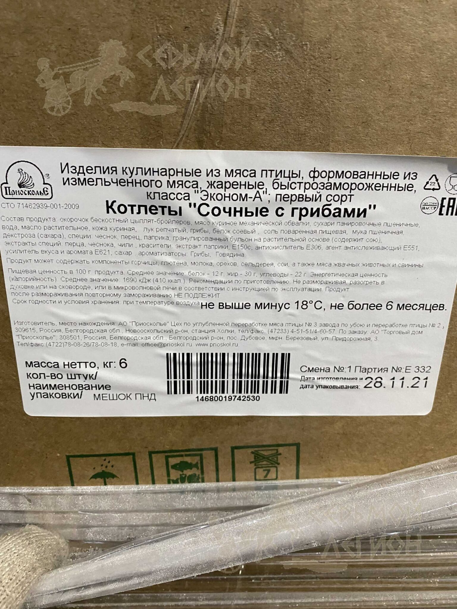 Nutritional value per 100 g. Average values: proteins-12 g., Fats-30 g., Carbohydrates-13 g. Energy value (calorie value). average value: 1540 kJ (370kcal). Expiration date and storage conditions: 6 months at temperatures below minus 18°C.
