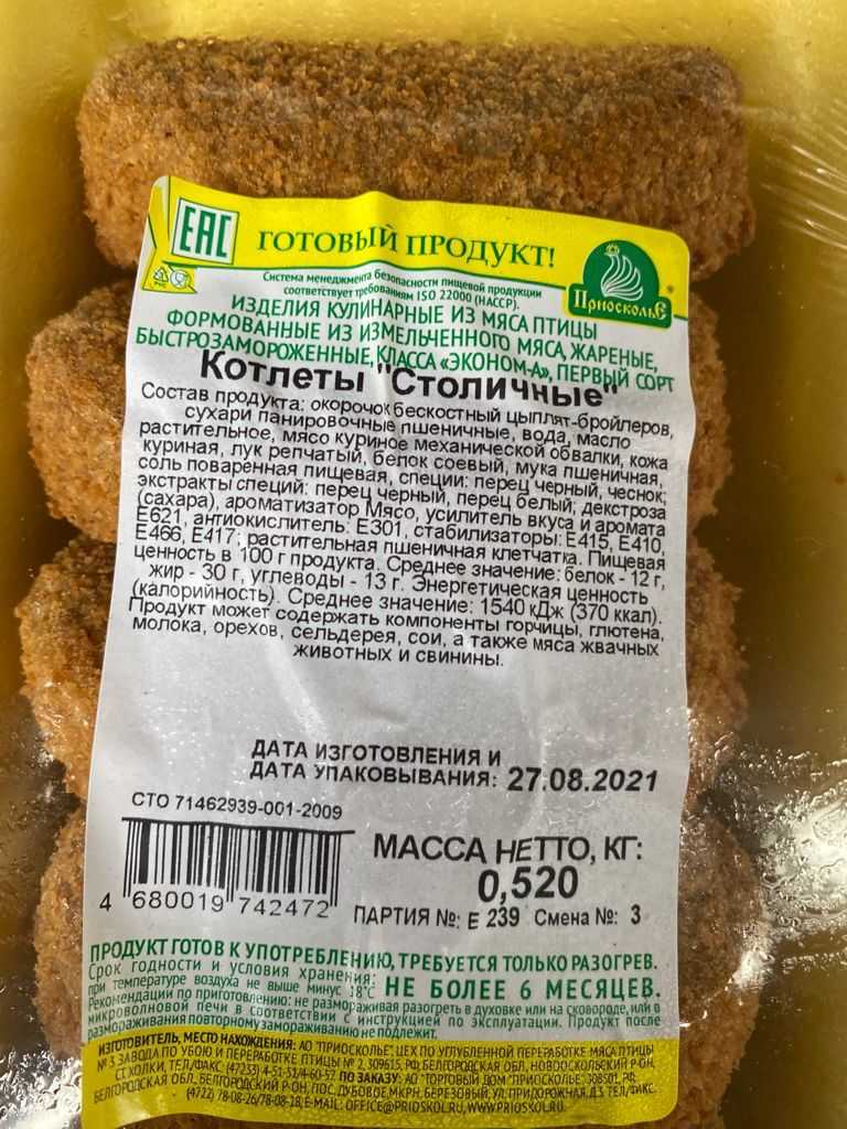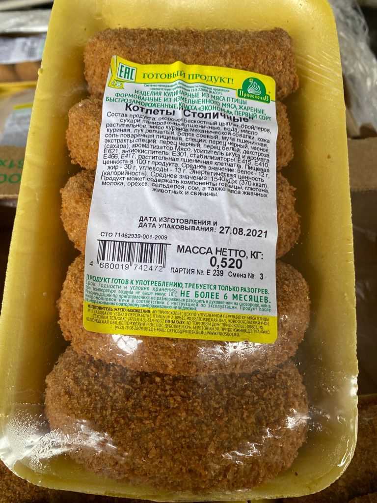 ПОЛУЧИТЬ СПЕЦИАЛЬНОЕ ПРЕДЛОЖЕНИЕ (ПРАЙС-ЛИСТ)GET A SPECIAL OFFER (PRICE LIST)Nutritional value per 100 g. Average values: proteins-12 g., Fats-30 g., Carbohydrates-13 g. Energy value (calorie value). average value: 1540 kJ (370kcal). Expiration date and storage conditions: 6 months at temperatures below minus 18°C.