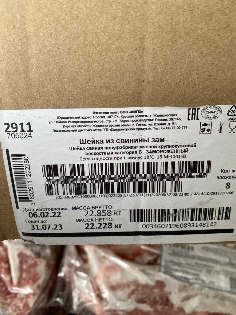 Nutritional and energy value per 100 g. (average values): Proteins-12 g. Fats-34 g.kcal 354/ kJ 1482. Expiration date and storage conditions: 18 months at temperatures below minus 18°C.
