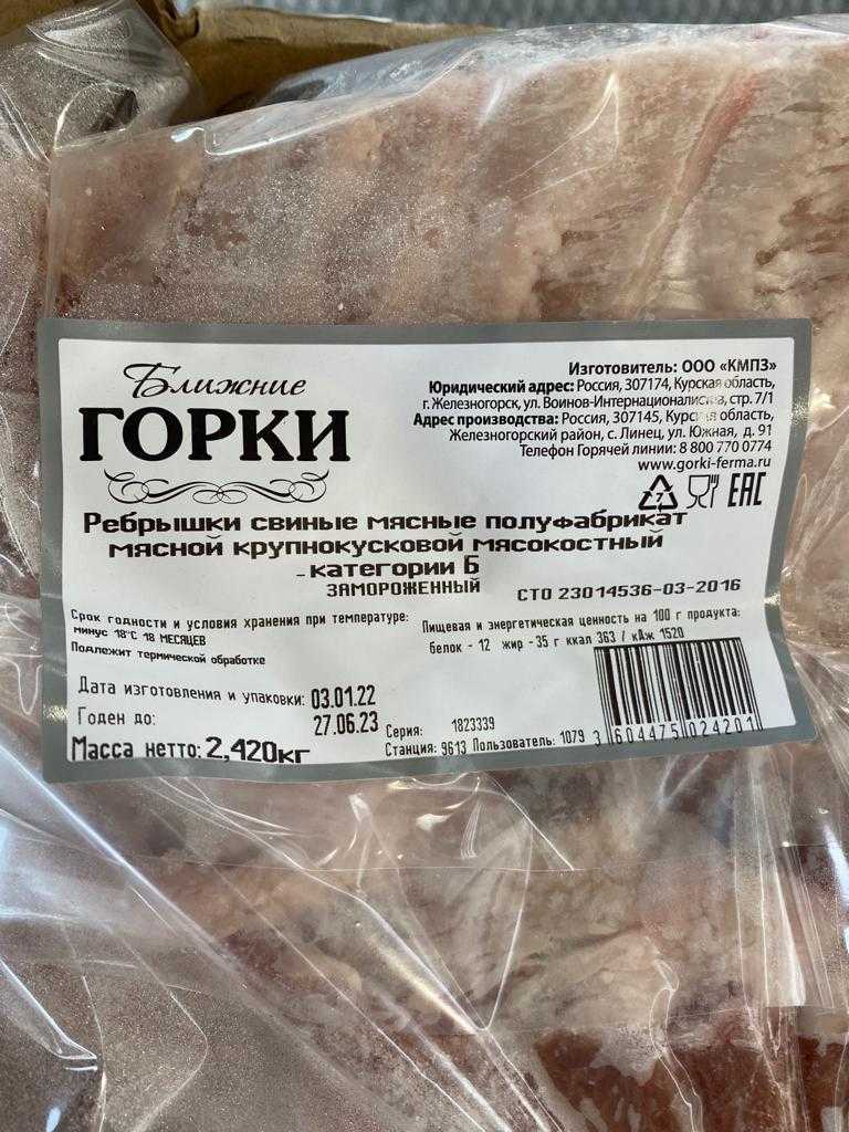 Nutritional and energy value per 100 g. (average values): Proteins-12 g. Fats-35 g.kcal 363/ kJ 1520. Expiration date and storage conditions: 18 months at temperatures below minus 18°C.
