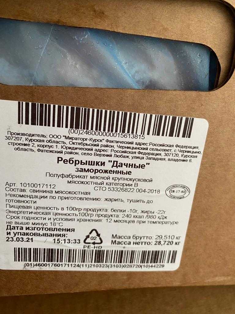 Nutritional value per 100 g.: Proteins-10 g. fats-22 g. Energy value per 100 g.: 240 kcal/980 kJ. Expiration date and storage conditions: 12 months at temperatures below minus 18°C.