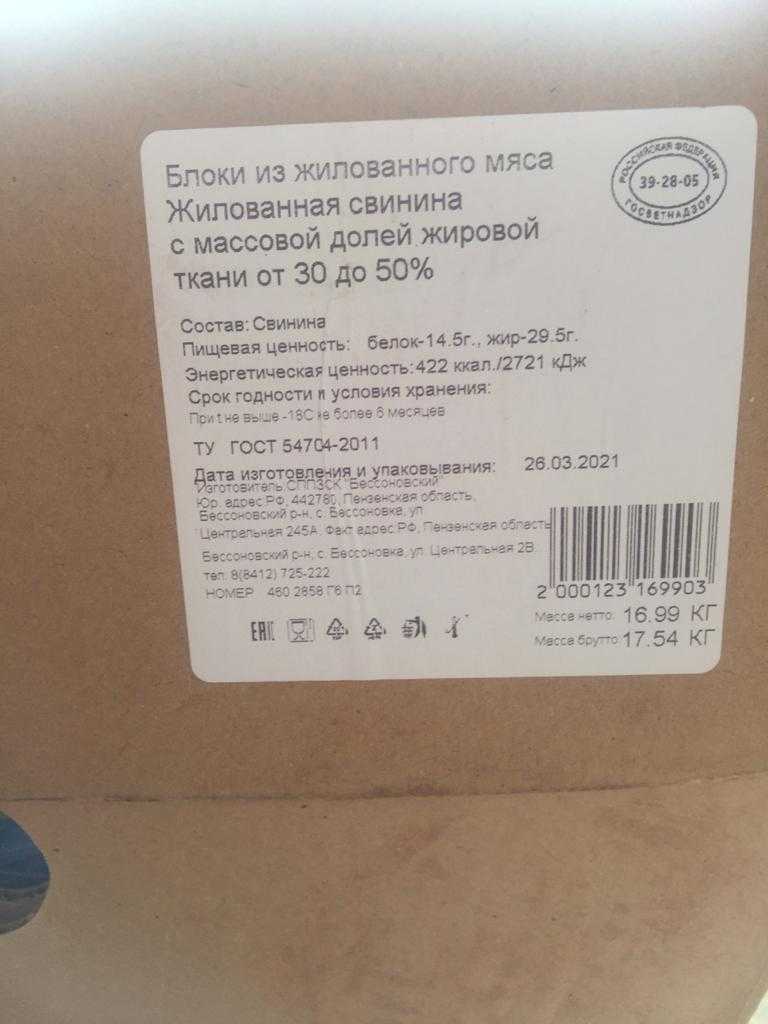 Nutritional and energy value per 100 g. (average values): Proteins-14,5 g. Fats-29,5 g.kcal 422/ kJ 2721. Expiration date and storage conditions: 6 months at temperatures below minus 18°C.