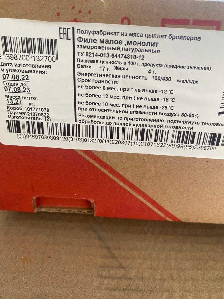 Пищевая ценность в 100 г. продукта (средние значения):Белки 17 г. Жиры4 г.Энергетическая ценность 100/430 ккал/кДжне более 6 мес. при t не выше -12 °Сне более 12 мес. при t не выше -18 ‘Сне более 18 мес. при t не выше -25 ‘Спри относительной влажности воздуха 80-90%