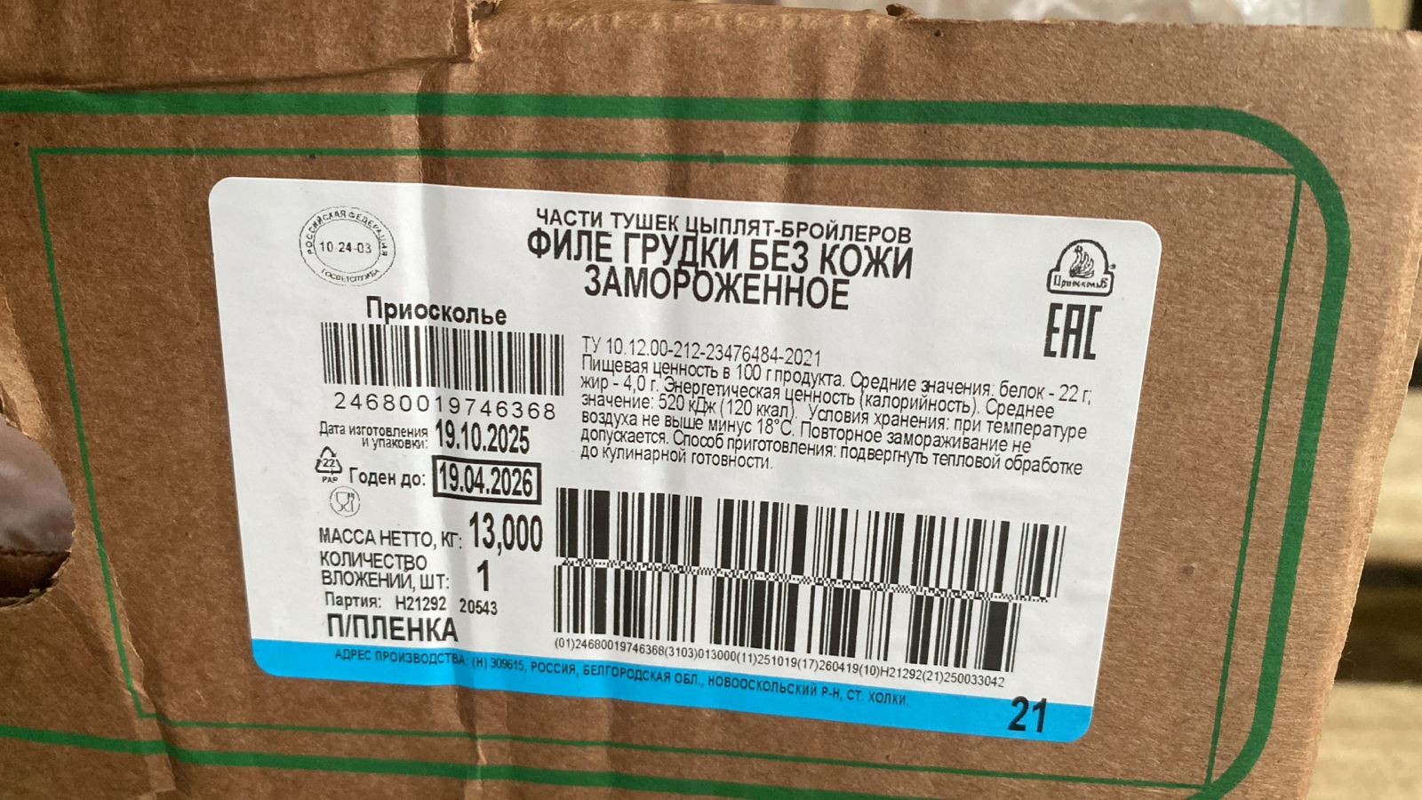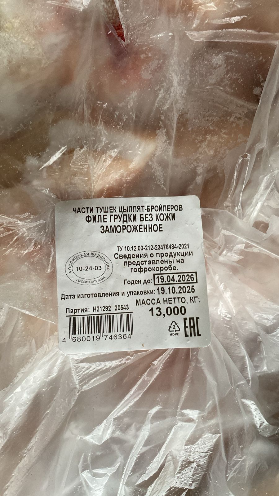Пищевая ценность в 100г продукта. Среднее значение: белок-21 г; жир-2,5 г. Энергетическая ценность (калорийность). Среднее значение: 450 кДж (110 ккал). Cрок годности и условия хранения: 6 месяцев при температуре не выше минус 18°C и относительной влажности воздуха 80-90%.