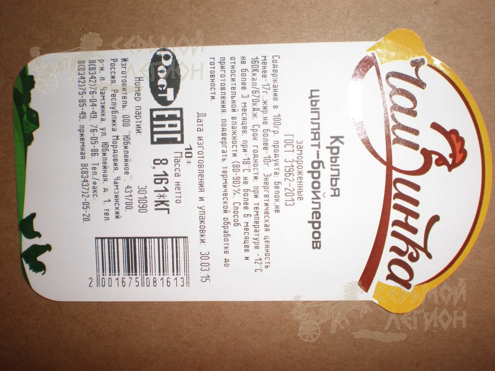 Содержание в 100г. продукта: белок не менее-17г. жир не более-10г. Энергетическая ценность-160ккал/670кДж. Cрок годности и условия хранения: 3 месяца при температуре не выше минус 12°C, 6 месяцев при температуре не выше минус 18°C и относительной влажности воздуха 80-90%.