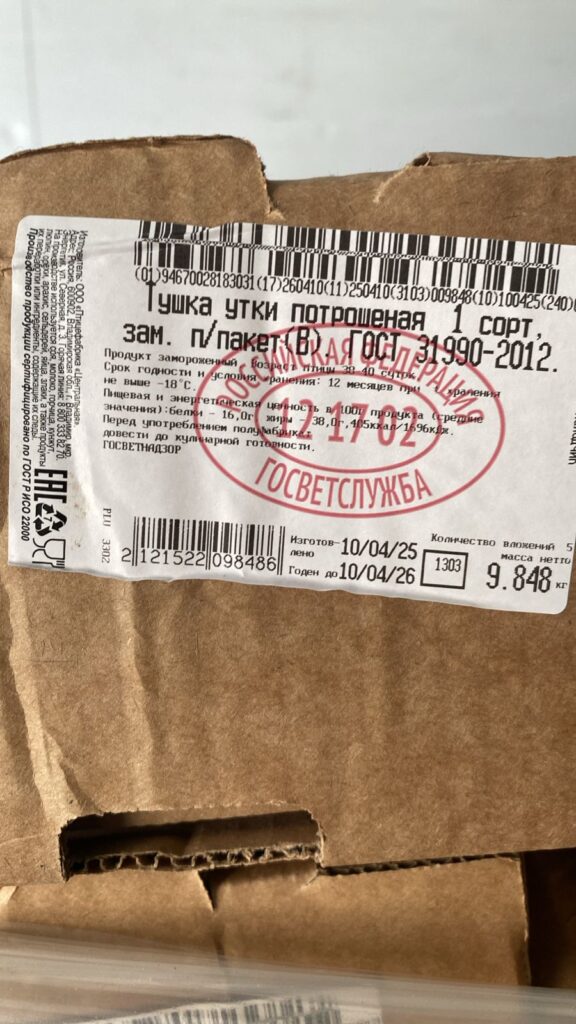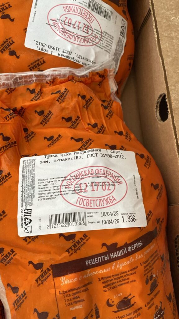 Тушка утки потрошенная 1-го сорта в герметичной упаковке