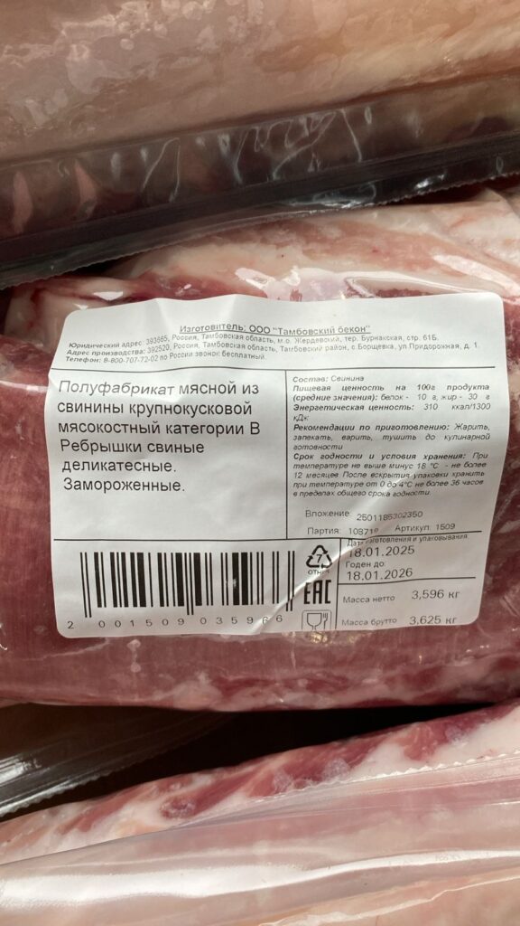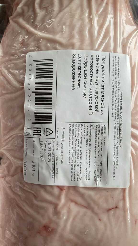 Ребра деликатесные 85/15 что означает мяса 85% ребер 15%. Продукт перед упаковкой в пакет разрезают на две части на одной из них остается реберная пластина, на второй части –мышечная ткань с хрящиками от ребер.