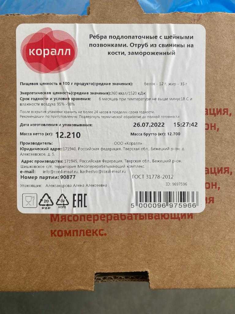 Пищевая ценность в 100г. продукта (средние значения): белок-12г. жир-35г.Энергетическая ценность (средние значения): 360ккал/1520кДж. Cрок годности и условия хранения: 6 месяцев при температуре не выше минус 18°C.