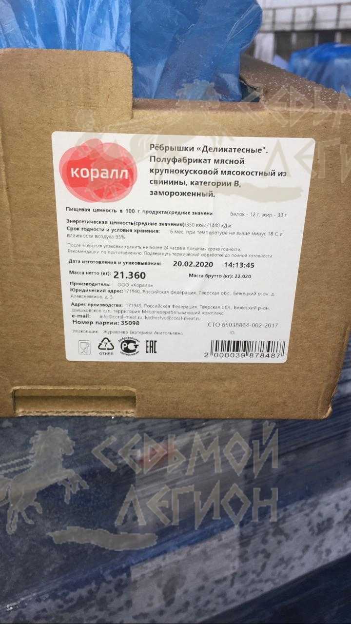 Пищевая ценность в 100г. продукта (средние значение) белок-12г. жир-33г. Энергетическая ценность (средние значения): 350ккал/1440кДж. Cрок годности и условия хранения: 6 месяцев при температуре не выше минус 18°C и относительной влажности воздуха 95%.